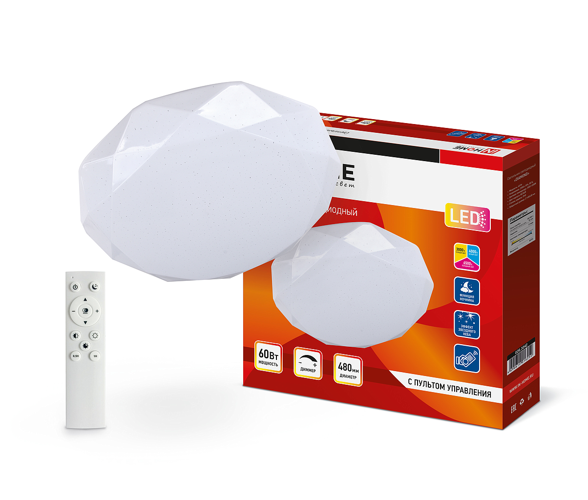 Светильник светодиодный Diamond с пультом дистанционным управлением 60Вт 230В 3000-6500K 4800Лм 480*80мм IN HOME