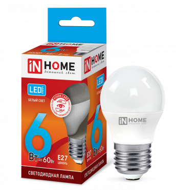 Лампа светодиодная LED-ШАР-VC 6Вт 230В Е27 4000К 570Лм IN HOME