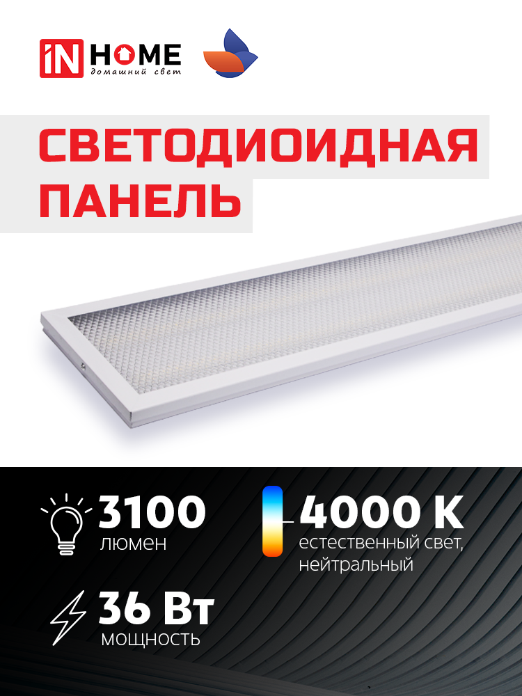 Панель светодиодная универсальная LPU-01 36Вт ПРИЗМА 230В 4000K 3420Лм 180х1195х19мм IP40 IN HOME (в индивидуальной упаковке)