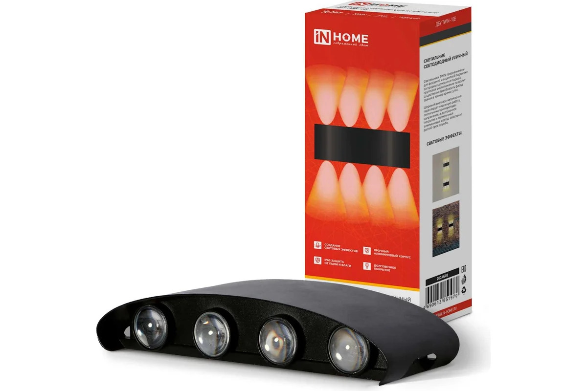 Светильник уличный светодиодный ДБУ TWIN-1030BL 10Вт 3000К IP54 черный IN HOME