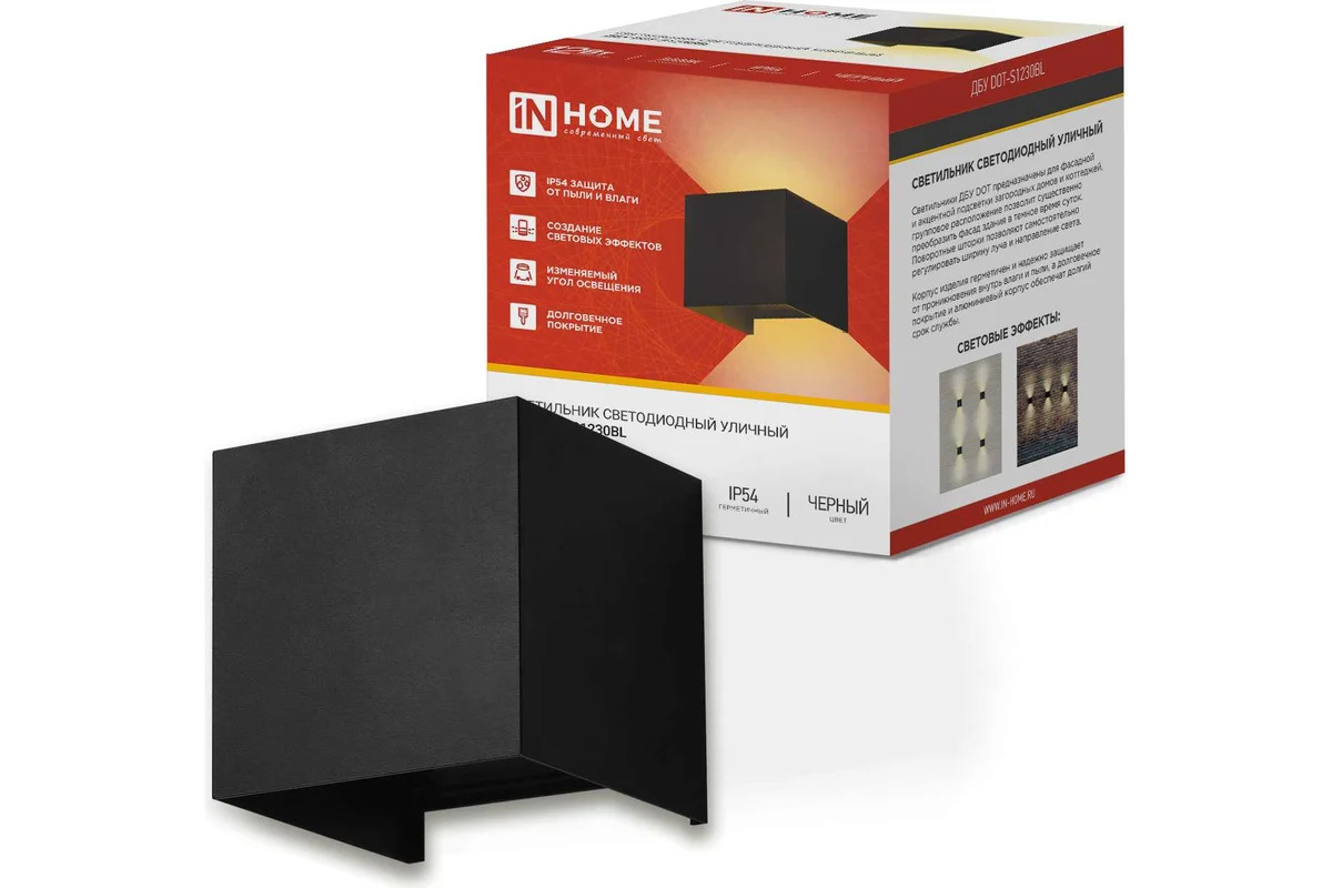 Светильник уличный светодиодный ДБУ DOT-S12B 12Вт 3000К IP54 квадратный черный IN HOME
