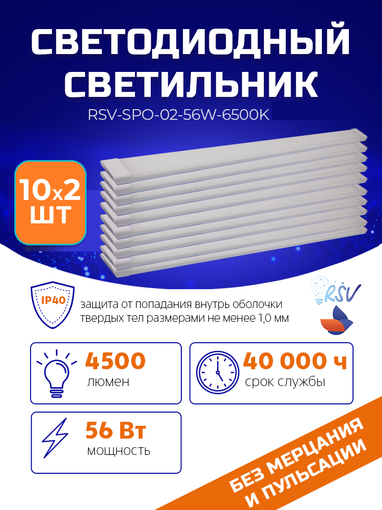 Светодиодный светильник RSV-SPO-02-56W-6500K OPL (20 штук в упаковке)