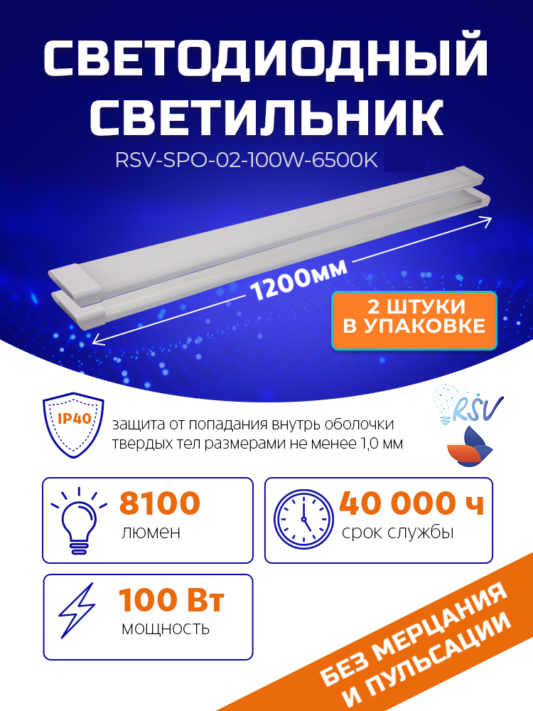 Светодиодный светильник RSV-SPO-02-100W-6500K TPR (2 штуки в упаковке)